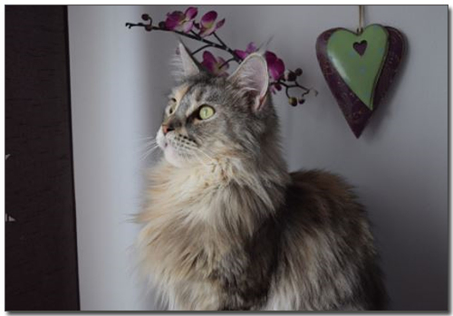 1850년경부터 미국 메인주에서 사육되면서 메인이라는 지역명과 너구리를 닮은 모습에 "라쿤의 쿤"을 결합하여 "메인쿤"이란 이름이 붙여졌습니다. 온몸에 털이 많은 품종으로 너구리보다 마치 사자를 연상하게 하는 모습이 특징입니다.
